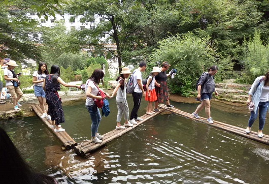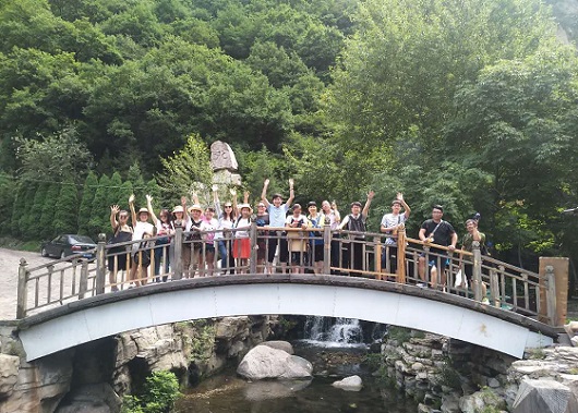 到達景區(qū)后,在導游的帶領下我們乘坐“小交通”一路上行,首先來到了綿山景點的第二站——云峰寺,之后去了水濤溝和一線天。在一線天陡峭的懸崖上有十余架天梯蜿蜒而上,而在我們的腳下是淙淙溪流。在這一路上,盛大美璃團隊表現出了他們團結互助的一面,主管白楊一路殿后生怕落下一個人,有些姑娘們不敢往前,大家就給以鼓勵,予以幫助,在這尖叫連連聲中到達了一線天的頂峰。這是整個游覽中最驚險,最刺激的一個環(huán)節(jié),也是最考驗人的一個環(huán)節(jié),雖然艱險,但是盛大鋼構的每位成員都表現出了不怕困難、勇往直前的不服輸的精神。